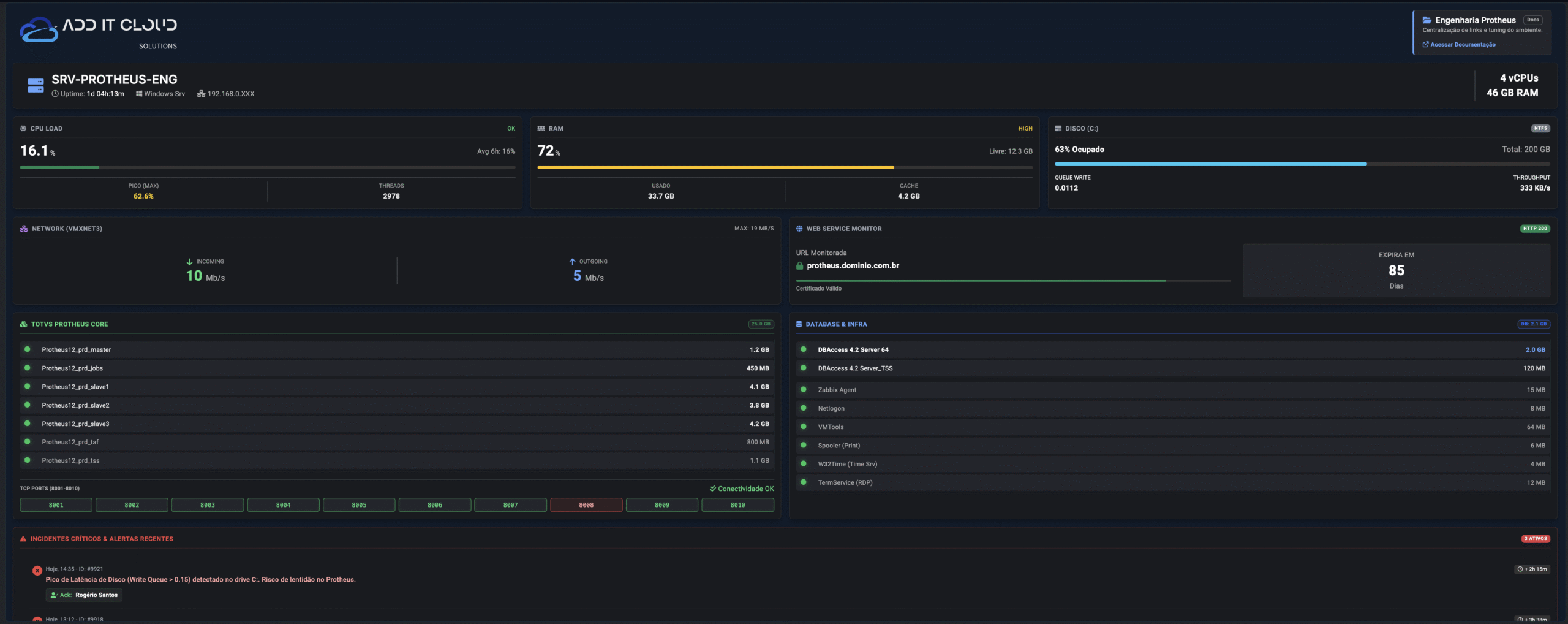 Monitoramento 24/7 de aplicação Protheus!